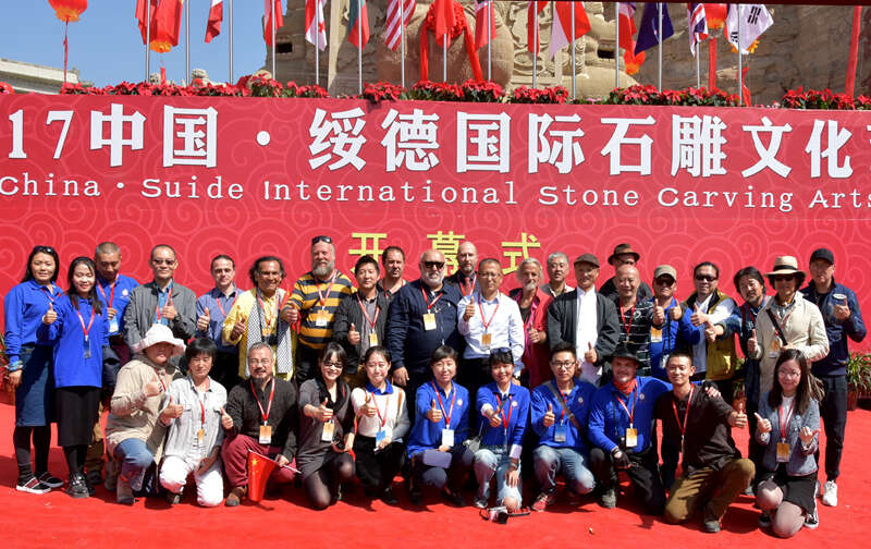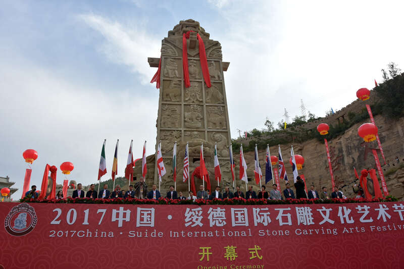 由中国雕塑学会、清华大学美术学院、绥德县人民政府、榆林市工业与信息化局、榆林市中小企业促进局、榆林市文化广电新闻出版局主办,中国雕塑学会展览部、清华大学美术学院雕塑系、绥德县中小企业促进局承办,绥德中华雄狮园筹委会、绥德县石雕协会协办的“上郡•天下名州”绥德国际石雕创作营活动于2017年9月29日在绥德中华雄狮园(黄土文化风情园)隆重开幕。